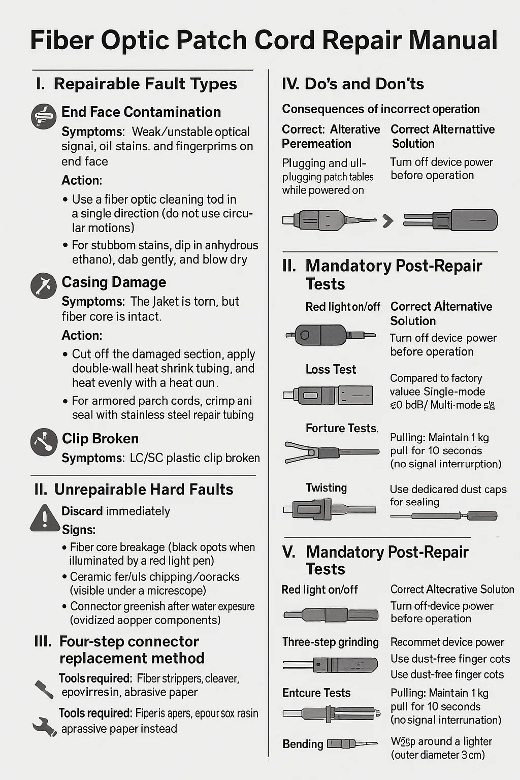 سیم پچ فیبر نوری کتابچه راهنمای تعمیر