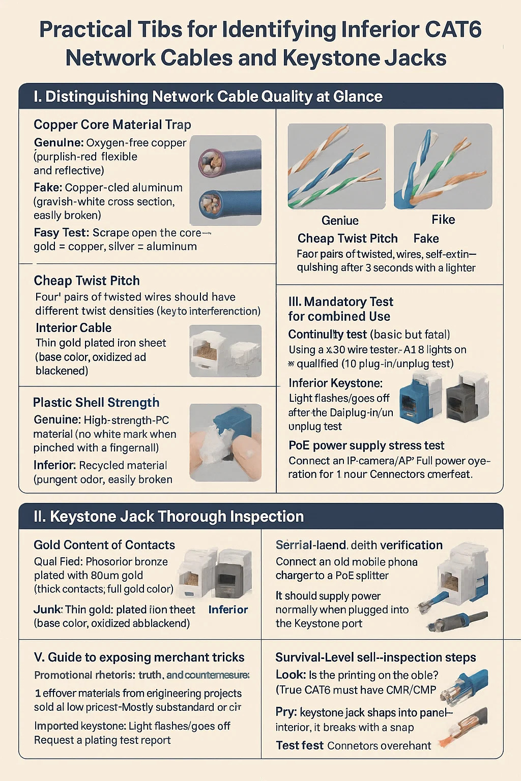 نکات کاربردی برای شناسایی کابلهای شبکه CAT6 و جکهای کیستون پایینتر