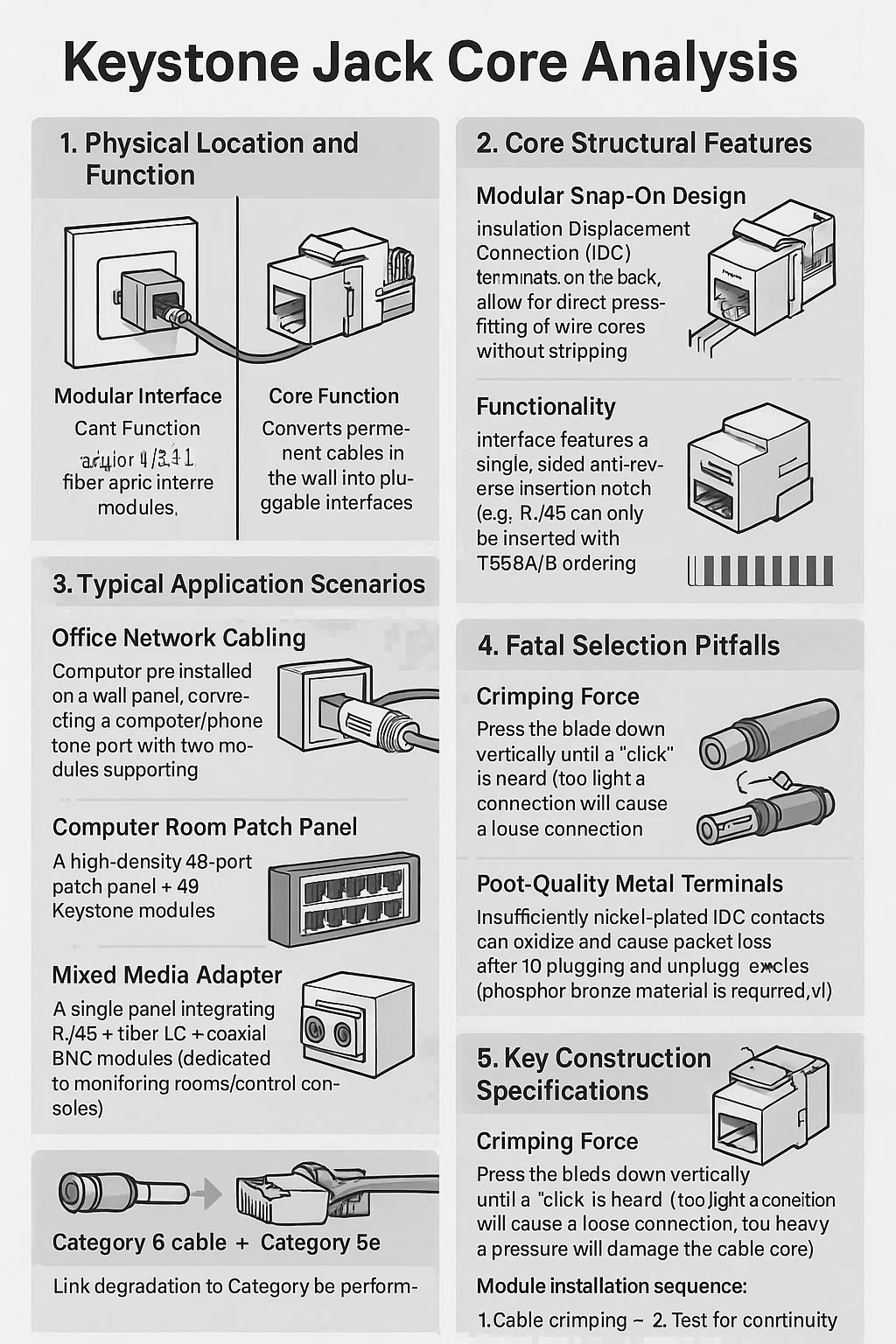 حامل رابط ماژولار: یک درگاه مربع تعبیه شده در یک پنل دیواری/پچ ، حامل ماژول های رابط فیبر نوری RJ45 ، RJ11 یا فیبر نوری که باعث اتصال بین دستگاه ها و کابل های شبکه می شود.