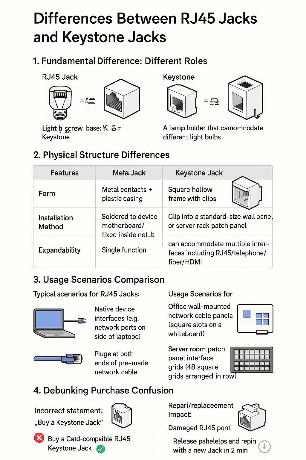 قیاس: RJ45 = پایه پیچ یک لامپ. کیستون = جا چراغی که می تواند لامپ های مختلف را در خود جای دهد.